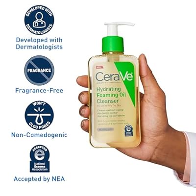 CeraVe Hydrating Foaming Oil Cleanser 236ml هو منظف لطيف وفعّال مصمم خصيصًا للبشرة الجافة إلى الجافة جدًا، بما في ذلك البشرة الحساسة والمعرضة للإكزيما. يتميز هذا المنتج بتركيبته الفريدة التي تتحول من زيت إلى رغوة ناعمة، مما يتيح تنظيفًا عميقًا دون التسبب في جفاف أو تهيج البشرة.