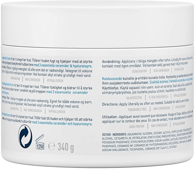 كريم CeraVe Moisturizing Cream 454g هو مرطب غني ومناسب للبشرة الجافة والحساسة، تم تطويره بالتعاون مع أطباء الجلدية لتوفير ترطيب طويل الأمد ودعم الحاجز الواقي للبشرة.